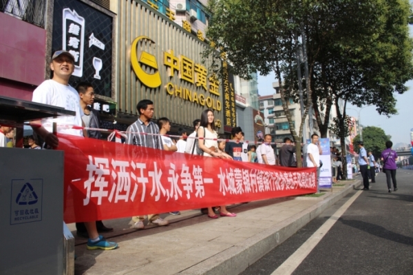 7月27日,2014凉都·六盘水夏季国际马拉松赛在市中心城区隆重举行。本次赛事以“清凉马拉松,情系六盘水”为主题,共设置全程马拉松、半程马拉松、5公里迷你马拉松以及爱情跑和亲子跑共五个项目,吸引来自32个国家和地区的近20000名选手参赛,其中包括来自美国、英国、肯尼亚、埃塞俄比亚等180名境外选手,参赛运动员中年龄最大的78岁,最小的1岁零3个月,中央电视台等新闻媒体进行了现场直播。本次是六盘水举办的第二届国际马拉松比赛,水城蒙银村镇银行蒋艳行长积极组织职工参与,并把参加马拉松比赛等社会性活动作为扩大水城蒙银村镇银行社会知名度、丰富职工文体生活的有力载,展现了蒙银职工良好的精神风貌。
